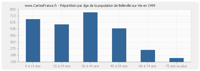 Répartition de la population de Belleville-sur-Vie par âge en 1999 :