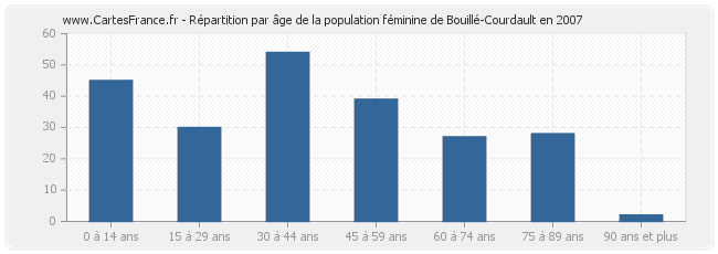 - Femmes de 30 à 44 ans habitant Bouillé-Courdault : 54