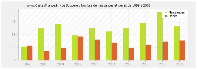 - Le Boupère en 2008 : 43 naissances et 29 décès