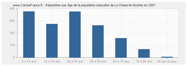 Répartition de la population masculine de La Chaize-le-Vicomte par âge en 2007 :
