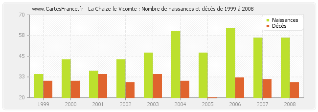 - La Chaize-le-Vicomte en 2008 : 56 naissances et 29 décès