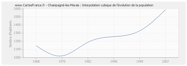 Cette courbe reprend l'historique de la population de Champagné-les-Marais de 1968 à 2007 en interpolation cubique. Ceci permet d'obtenir plus précisément la population de la commune de Champagné-les-Marais les années ou aucun recensement n'a été effectué.