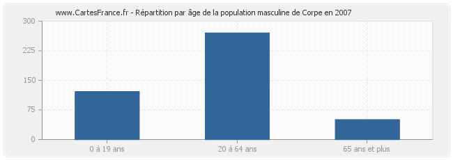 Répartition de la population masculine de Corpe par âge en 2007 :