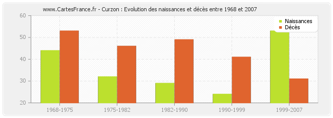 Curzon : évolution des naissances et décès de 1968 à 2007