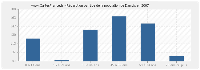 - Population de Damvix de 45 à 59 ans : 166 habitants