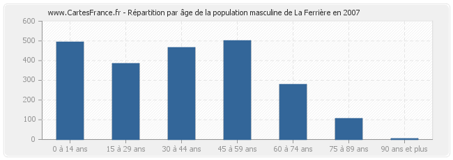 Répartition de la population masculine de La Ferrière par âge en 2007 :