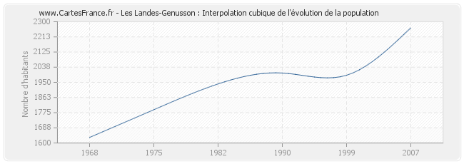 Cette courbe reprend l'historique de la population de Les Landes-Genusson de 1968 à 2007 en interpolation cubique. Ceci permet d'obtenir plus précisément la population de la commune de Les Landes-Genusson les années ou aucun recensement n'a été effectué.
