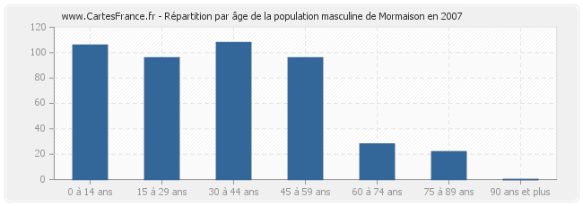 Répartition de la population masculine de Mormaison par âge en 2007 :