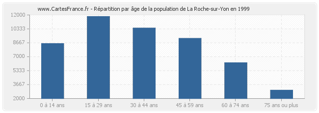 Répartition de la population de La Roche-sur-Yon par âge en 1999 :