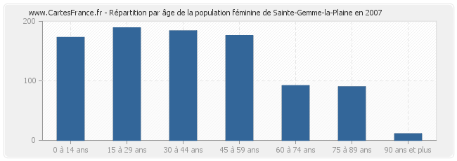 Répartition de la population féminine de Sainte-Gemme-la-Plaine par âge en 2007 :