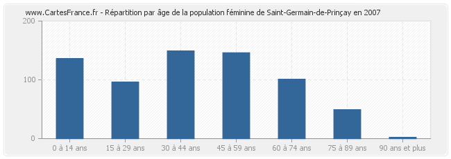 Répartition de la population féminine de Saint-Germain-de-Prinçay par âge en 2007 :