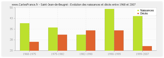 Saint-Jean-de-Beugné : évolution des naissances et décès de 1968 à 2007
