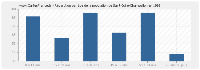 Répartition de la population de Saint-Juire-Champgillon par âge en 1999 :