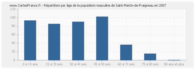 Répartition de la population masculine de Saint-Martin-de-Fraigneau par âge en 2007 :
