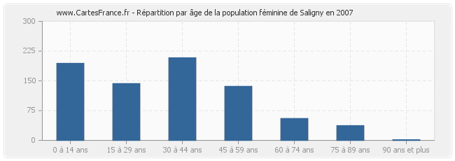 Répartition de la population féminine de Saligny par âge en 2007 :