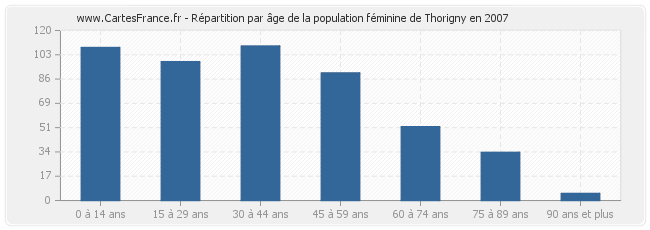 Répartition de la population féminine de Thorigny par âge en 2007 :