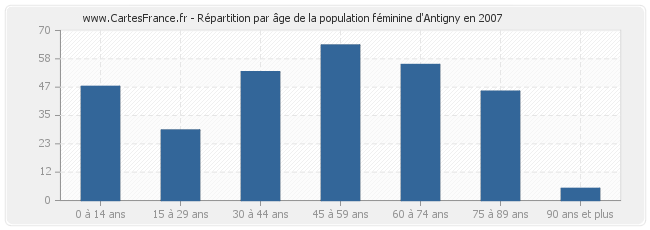 - Femmes de 45 à 59 ans habitant Antigny : 64