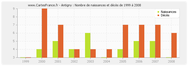 Antigny : naissances et décès de 1999 à 2008