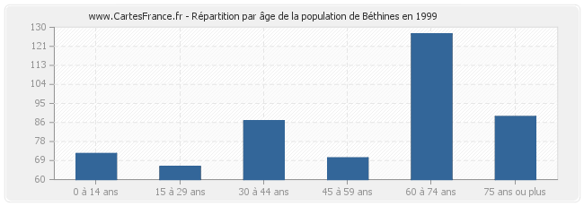 - Population de Béthines de 60 à 74 ans : 127 habitants