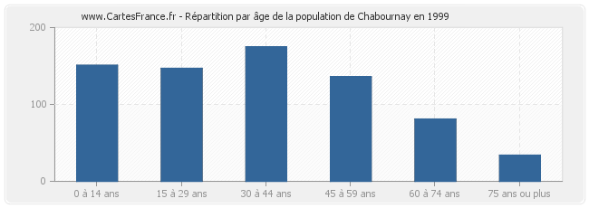 Répartition de la population de Chabournay par âge en 1999 :