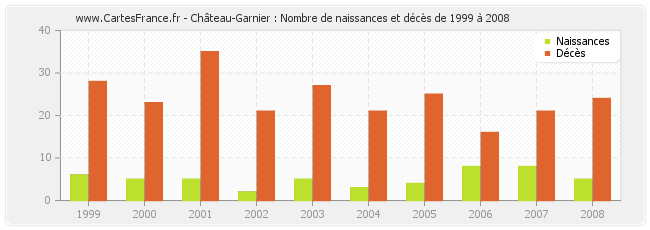 - Château-Garnier en 2008 : 5 naissances et 24 décès