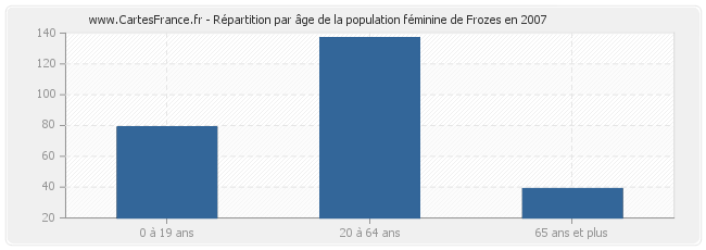 Répartition de la population féminine de Frozes par âge en 2007 :