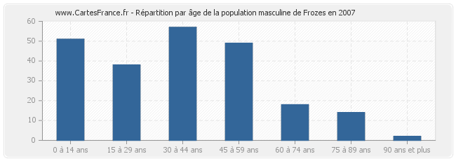 Répartition de la population masculine de Frozes par âge en 2007 :