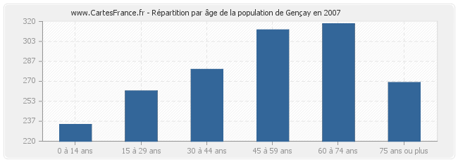 - Population de Gençay de 60 à 74 ans : 318 habitants