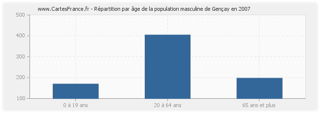 Répartition de la population masculine de Gençay par âge en 2007 :