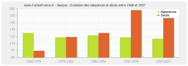 Gençay : évolution des naissances et décès de 1968 à 2007