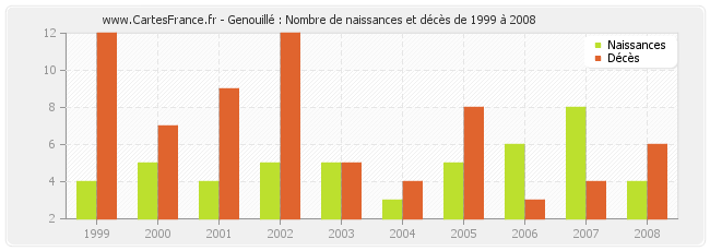 - Genouillé en 2008 : 4 naissances et 6 décès