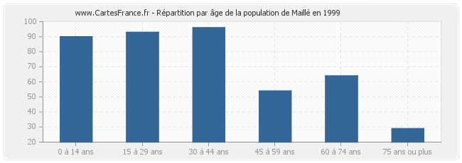 - Population de Maillé de 15 à 29 ans : 93 habitants