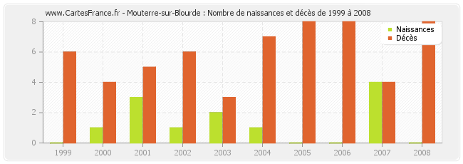Mouterre-sur-Blourde : naissances et décès de 1999 à 2008