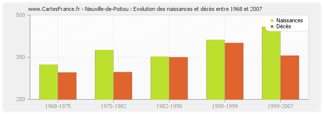 Neuville-de-Poitou : évolution des naissances et décès de 1968 à 2007