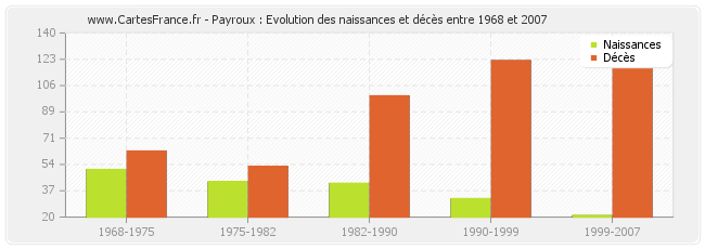 Payroux : évolution des naissances et décès de 1968 à 2007