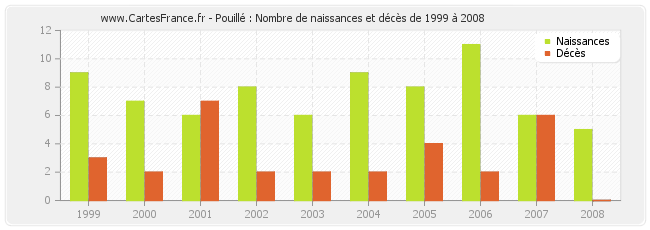 - Pouillé en 2008 : 5 naissances et 0 décès
