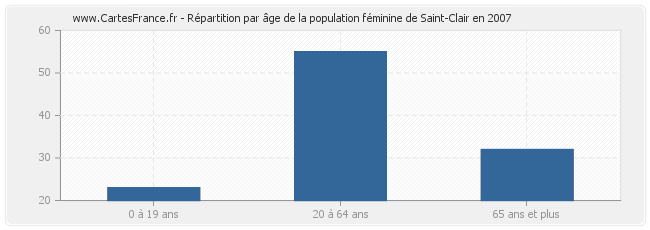 Répartition de la population féminine de Saint-Clair par âge en 2007 :