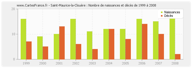 - Saint-Maurice-la-Clouère en 1999 : 16 naissances et 7 décès