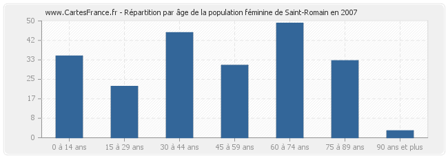 Répartition de la population féminine de Saint-Romain par âge en 2007 :