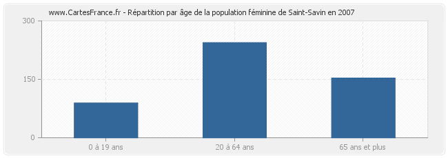 Répartition de la population féminine de Saint-Savin par âge en 2007 :