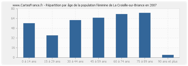 Répartition de la population féminine de La Croisille-sur-Briance par âge en 2007 :