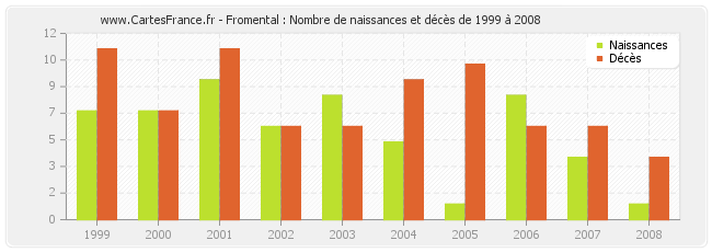 Fromental : évolution des naissances et décès de 1968 à 2007