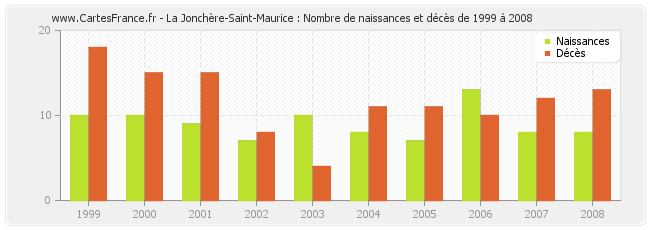 - La Jonchère-Saint-Maurice en 1999 : 10 naissances et 18 décès