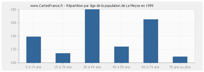 - Population de La Meyze de 30 à 44 ans : 180 habitants