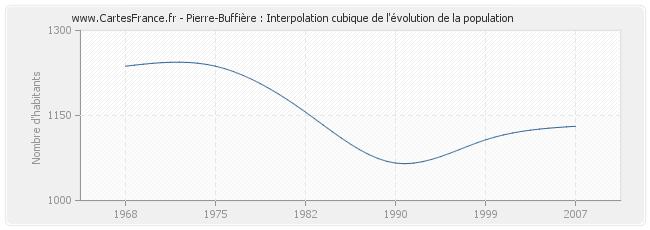 Cette courbe reprend l'historique de la population de Pierre-Buffière de 1968 à 2007 en interpolation cubique. Ceci permet d'obtenir plus précisément la population de la commune de Pierre-Buffière les années ou aucun recensement n'a été effectué.