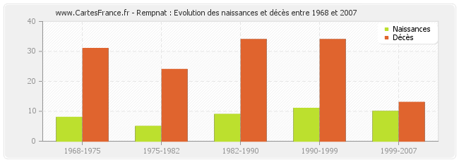 Rempnat : évolution des naissances et décès de 1968 à 2007