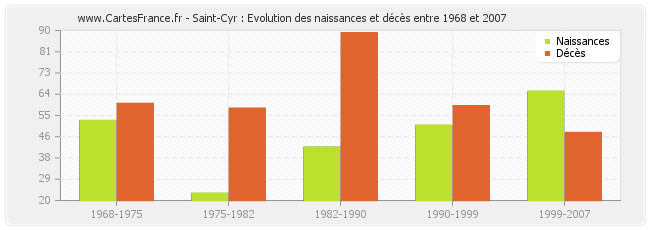 Saint-Cyr : évolution des naissances et décès de 1968 à 2007