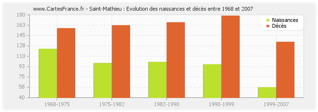 Saint-Mathieu : évolution des naissances et décès de 1968 à 2007