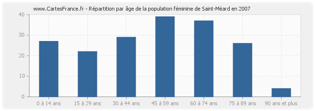 Répartition de la population féminine de Saint-Méard par âge en 2007 :