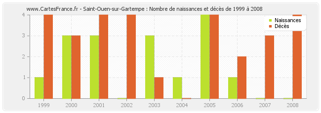 - Saint-Ouen-sur-Gartempe en 2008 : 0 naissances et 4 décès
